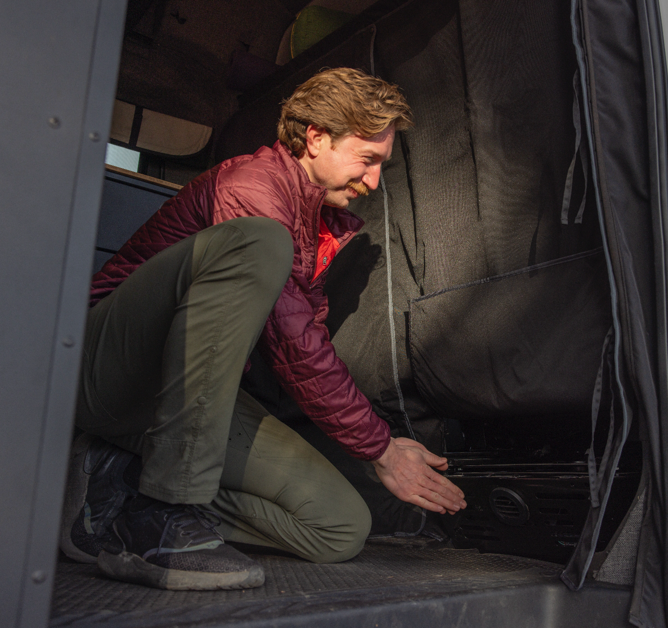 Meanwhile, the Ford Transit Privacy Curtain provides quick, convenient privacy the moment you need it. Recycled black fabric stealthily blocks outside views, while plush ThermaTech foam helps regulate temperature for year-round comfort. With a finished look and superior light blocking, this bundle delivers storage, comfort, and confidence wherever you park.