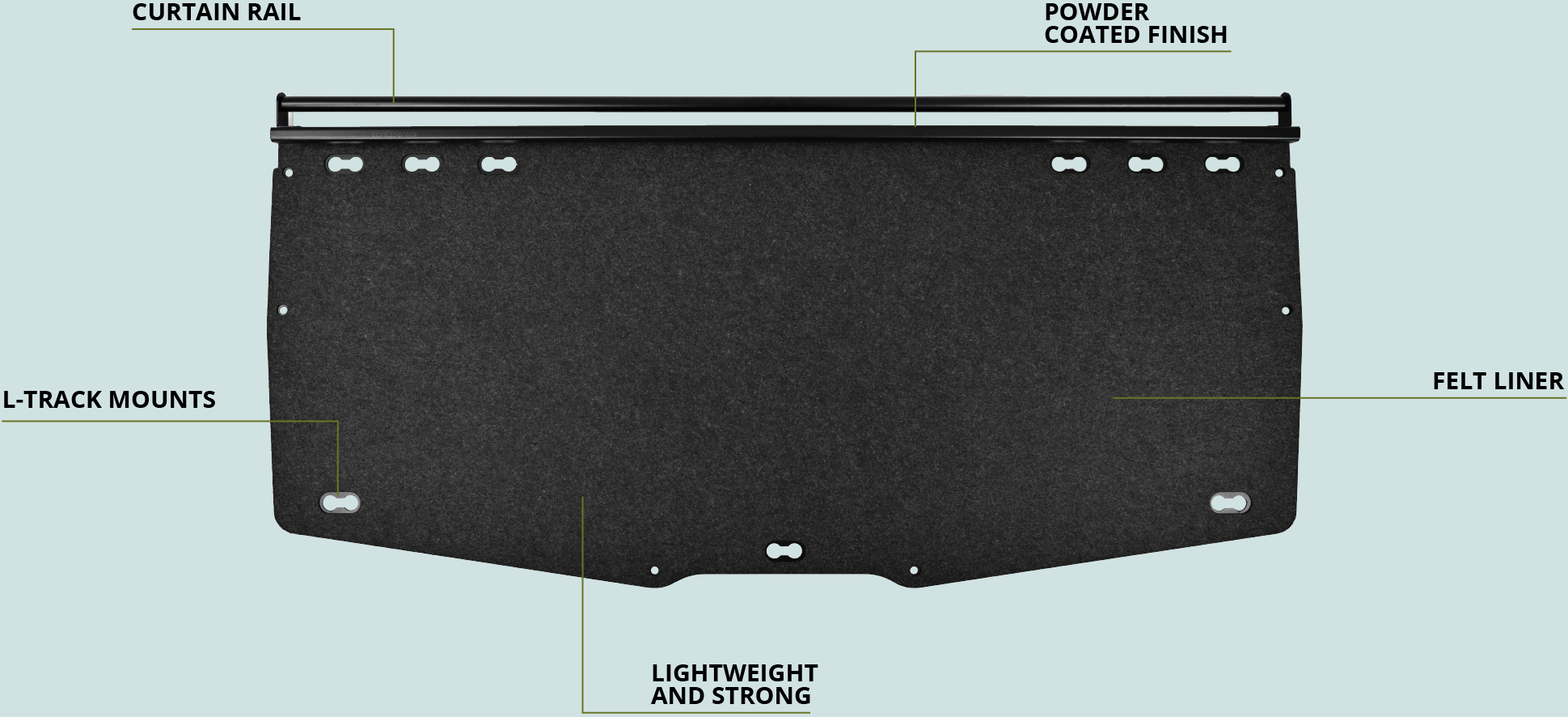 At VanEssential, we design for a premium user experience. That means thoughtful features that go the extra mile - like a felt liner for a noise free experience, and built in l-track mounts - for the most versatile storage ever seen on a headliner shelf.